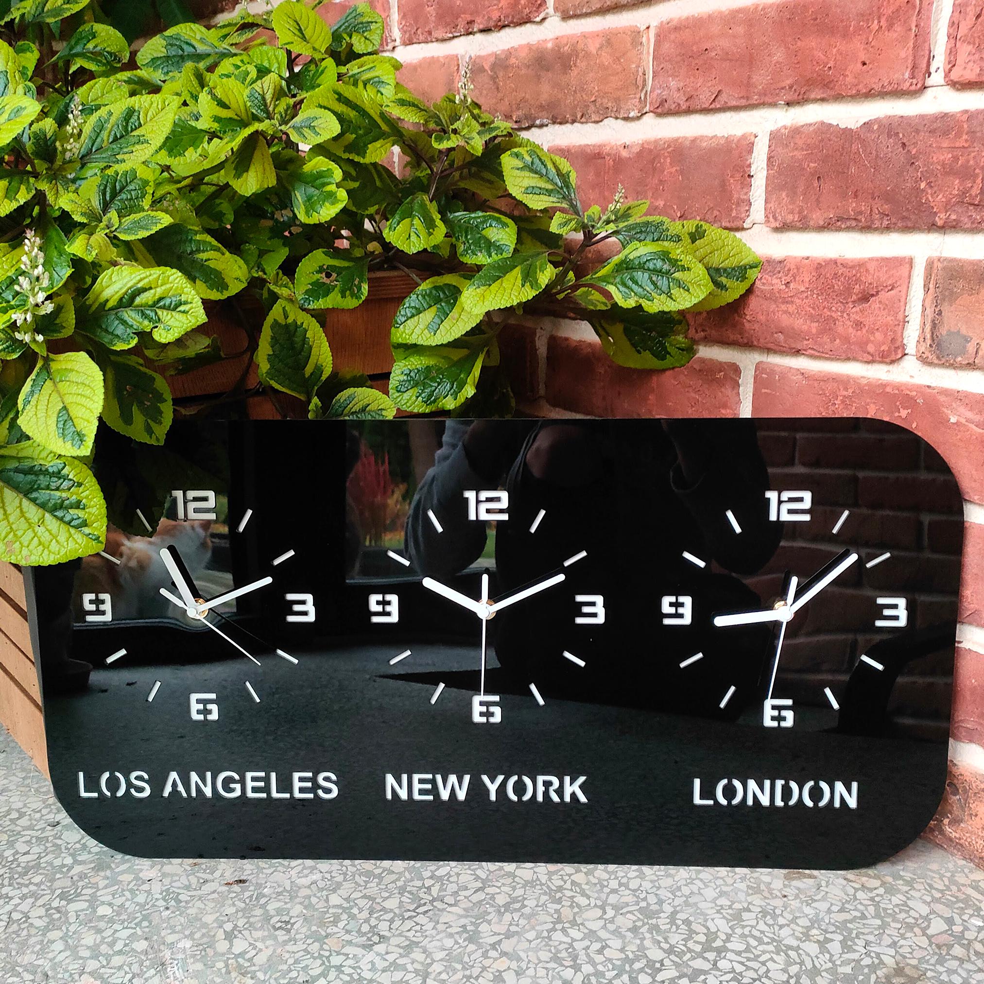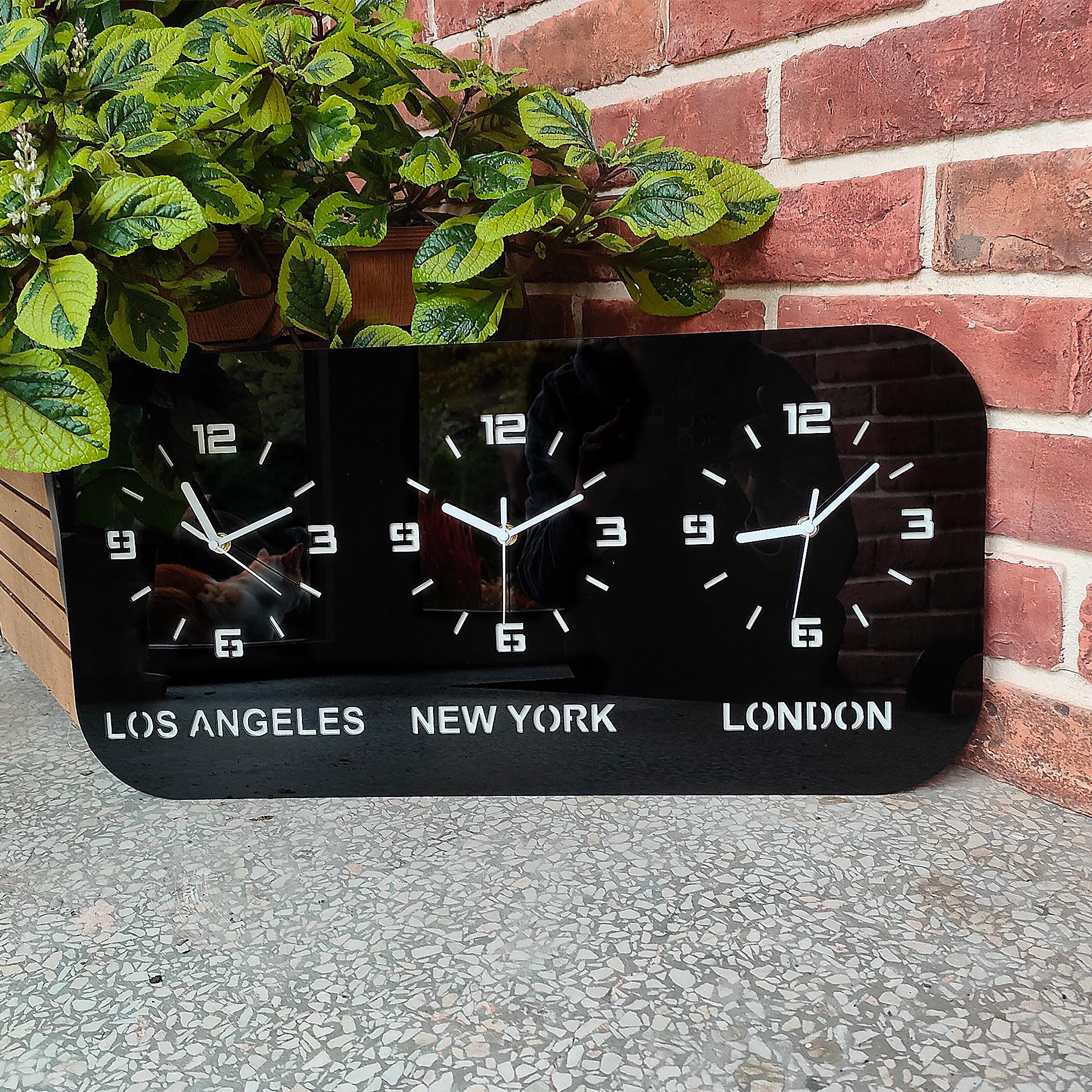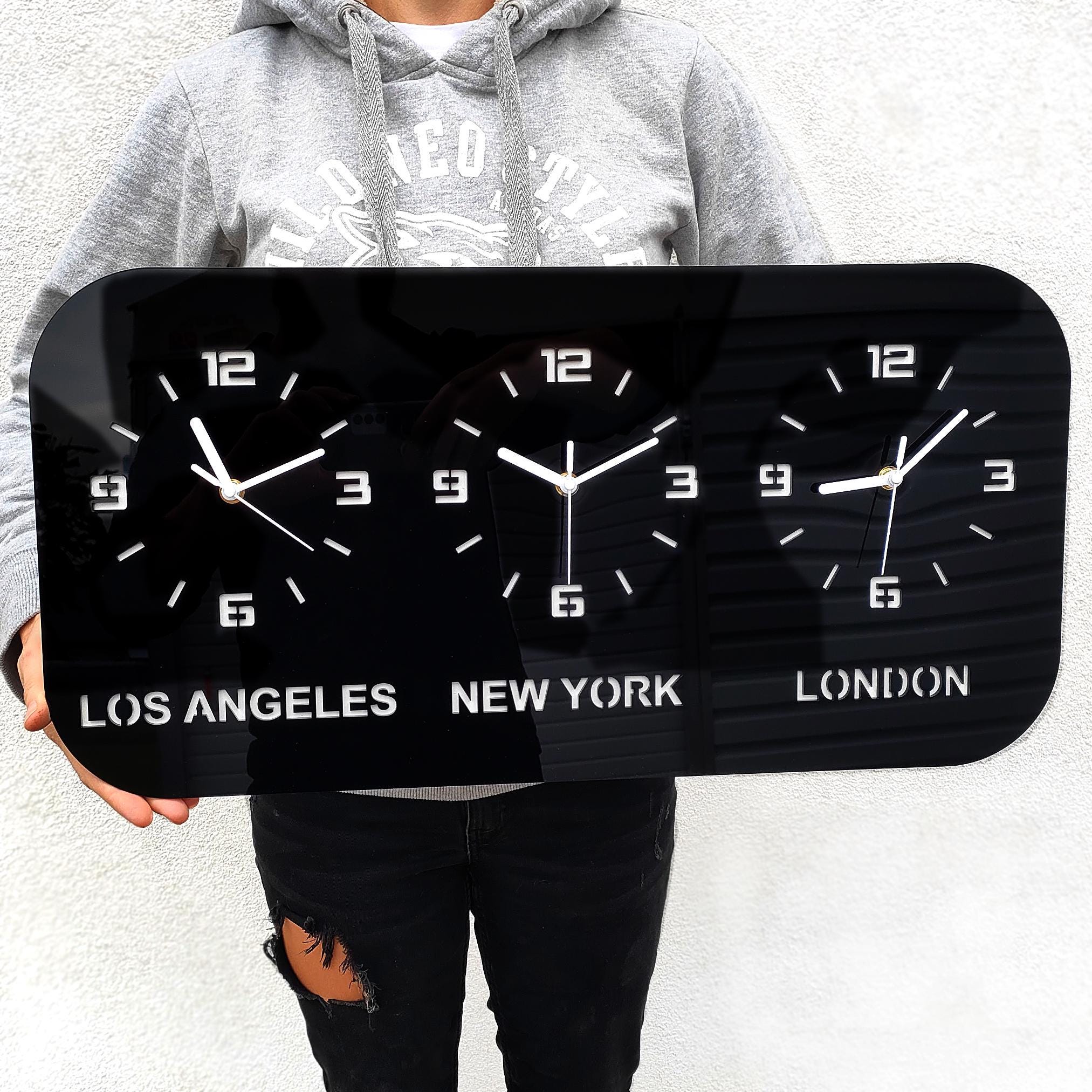 Featuring three precise clock mechanisms for **Los Angeles, New York, and London**, this sleek design helps you stay connected with the world — perfect for travelers, business owners, or modern homes.