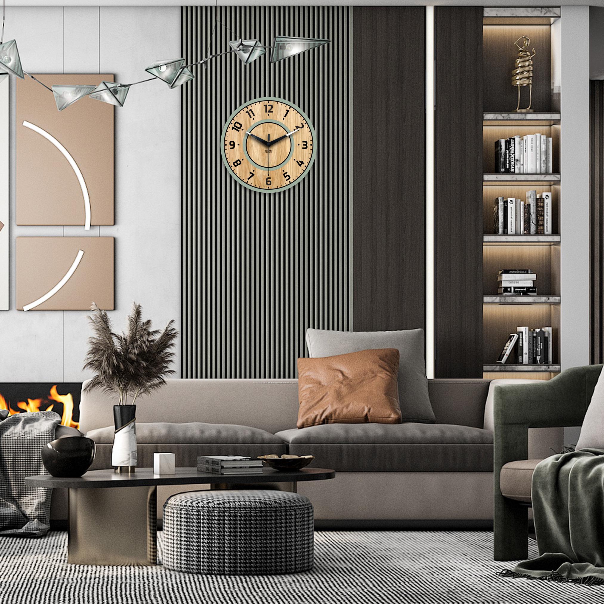 Bring calm elegance to your home with this **modern sage green wall clock** featuring a **natural oak veneer finish**. The combination of soft sage tones and warm wood texture creates a perfect balance between contemporary style and cozy charm.