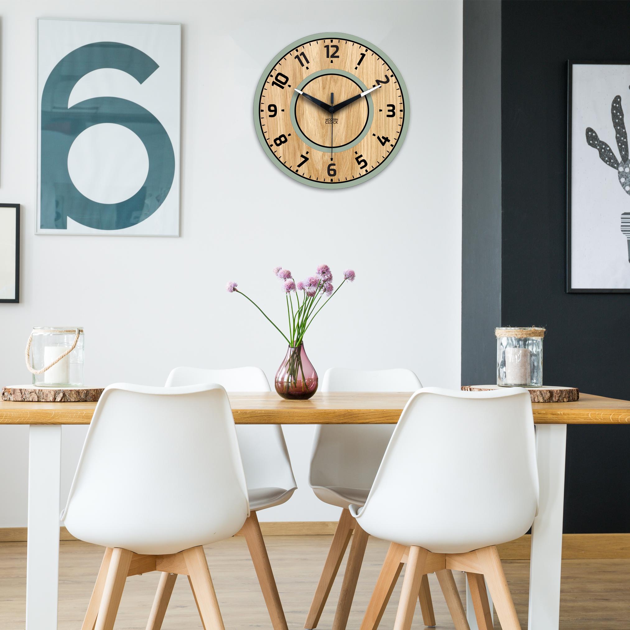 sage wall clock, oak wall clock, wooden wall clock, minimalist clock, modern wall decor, scandi home decor, natural wood clock, gift for home, quiet wall clock, contemporary design, eco home, wall art decor, kitchen clock, living room clock, handmade clock