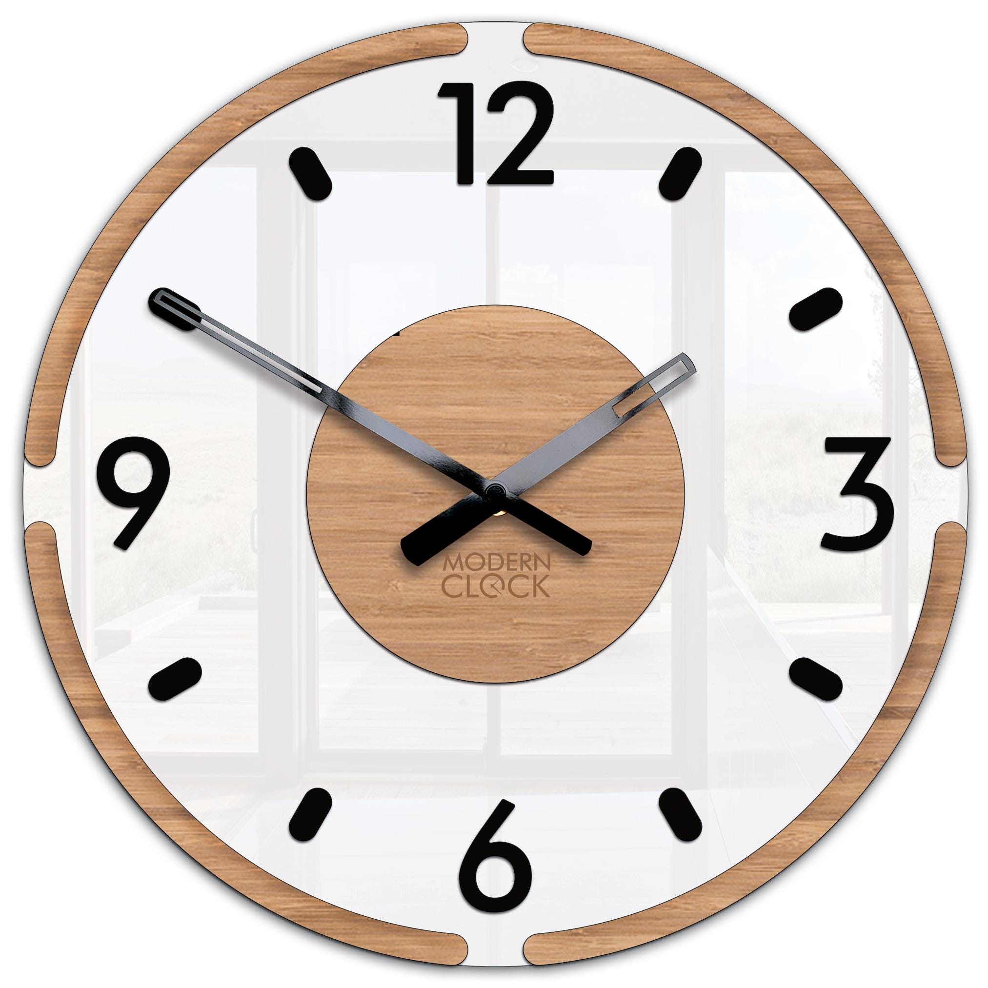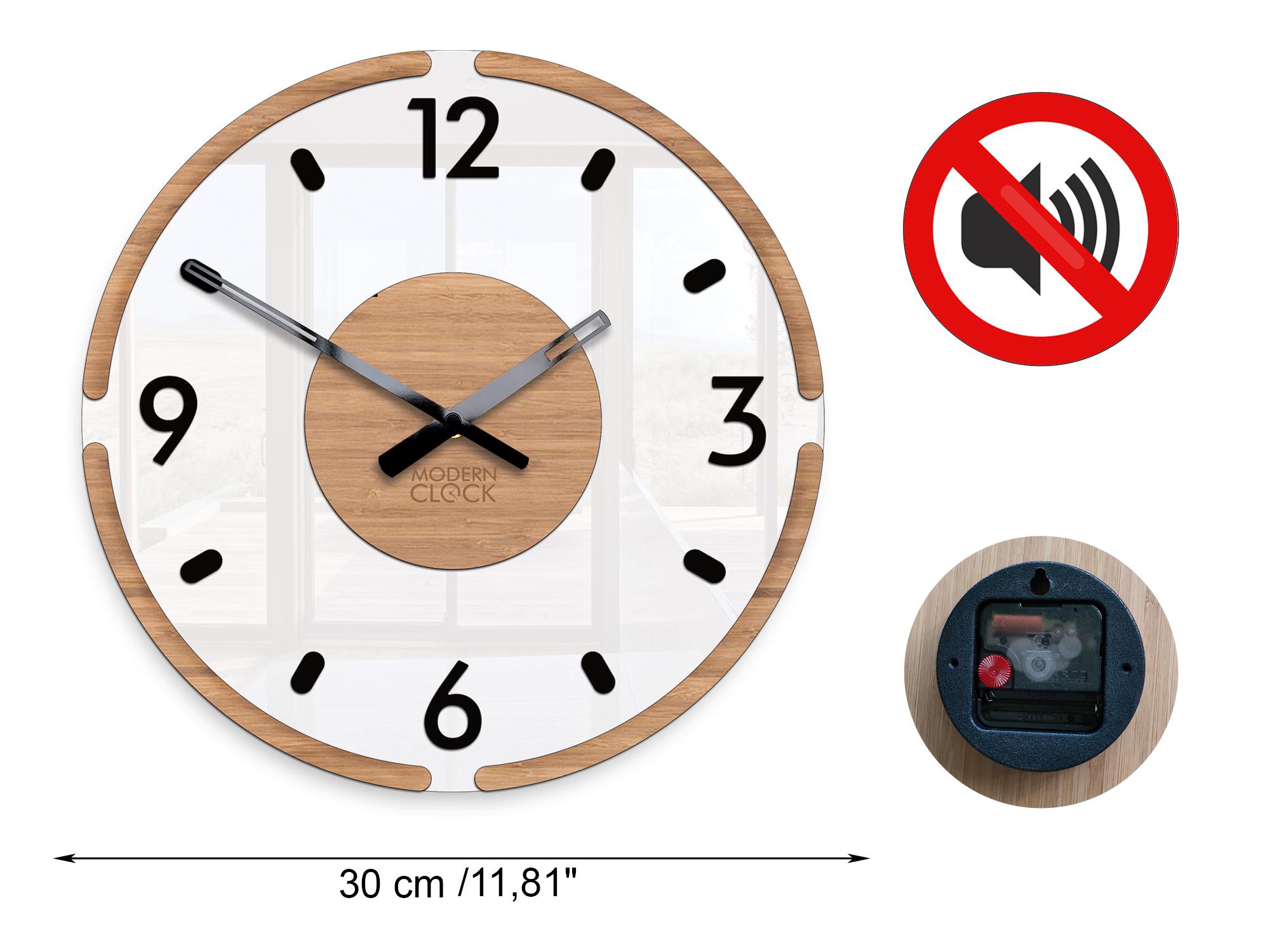 Modern Bamboo Wall Clock – White Gloss Acrylic Clock, Minimalist Silent Wall Decor, Large Contemporary Clock for Living Room or Office Dubai